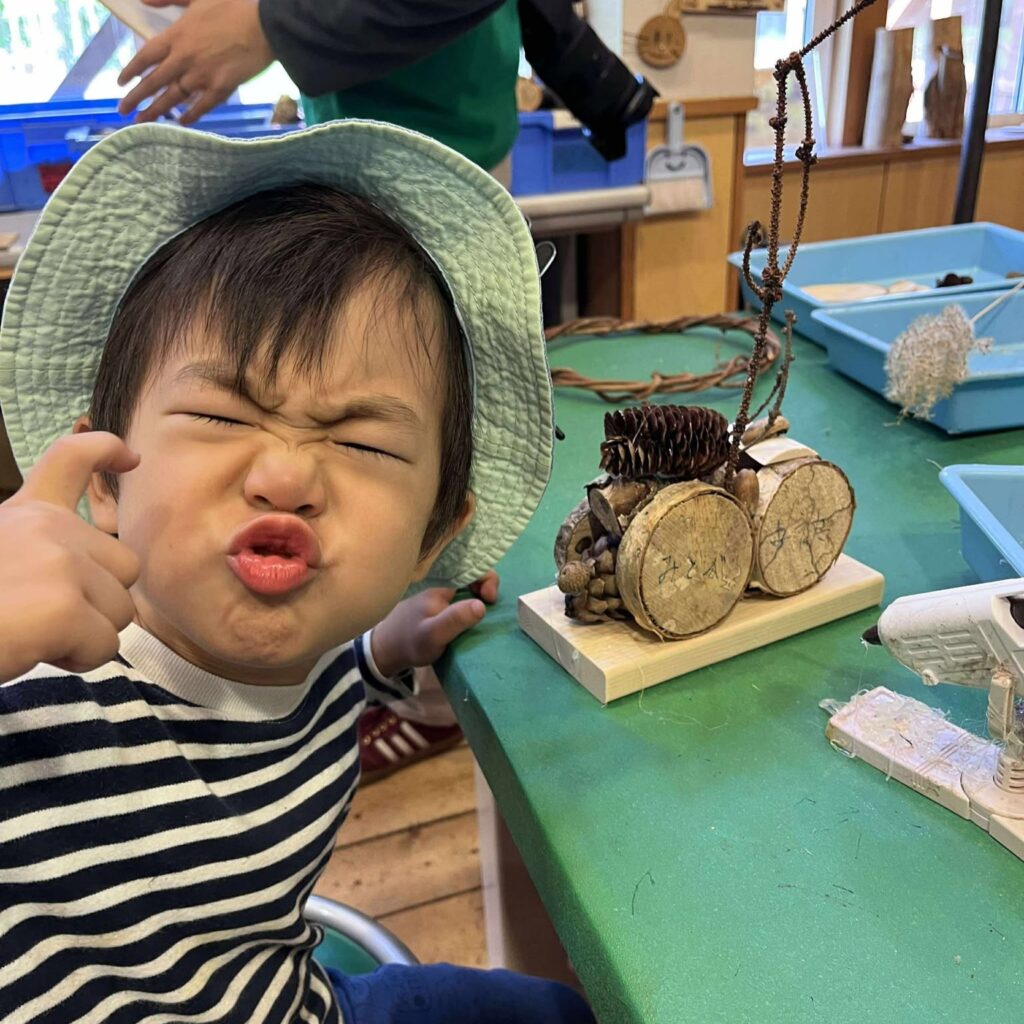 森の迷路では友達と協力しながらゴールを目指したり、木工体験ではどんなものを作るか自分で考え、自分なりに工夫して集中して取り組んだり。家ではなかなか見られない姿に、成長を感じました。